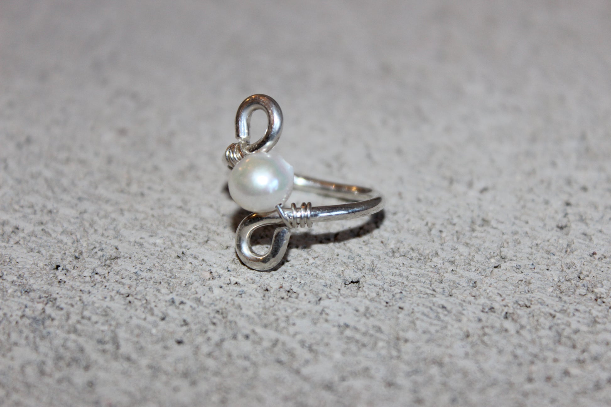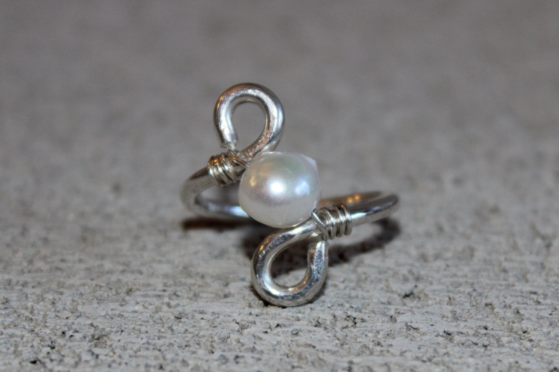 (A10) Handmade 925 Sterling Silver Ring w Freshwater Pearl (Size 7.5)