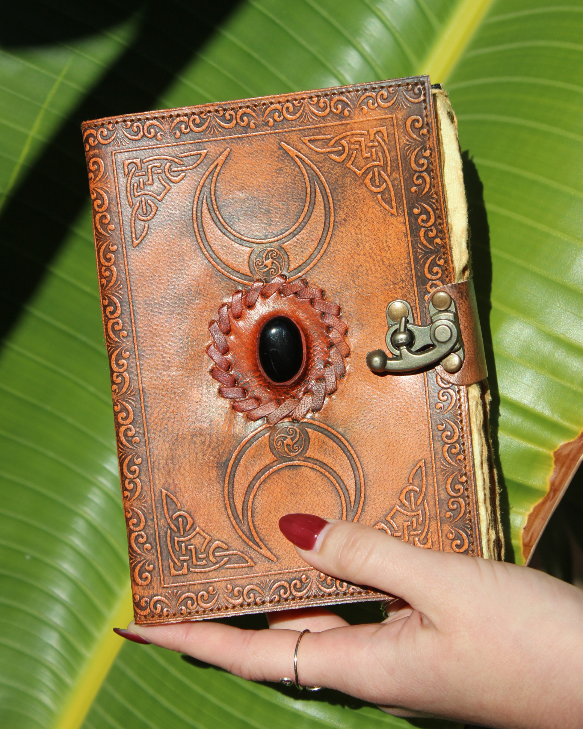Handmade Black Obsidian Moon Leather Journal