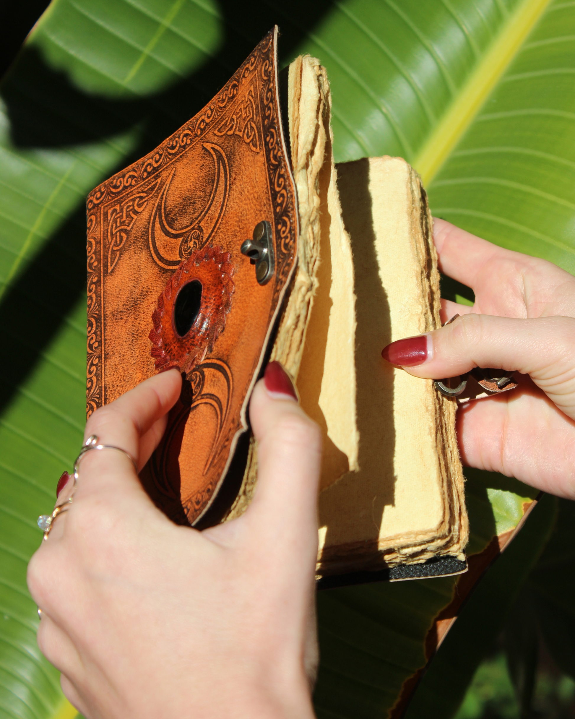 These handcrafted leather journals come from a small artisan business that creates each piece with care, intention, and old world charm. Every journal is made using real leather that is hand cut, hand stitched, and hand stamped which means no two will ever be exactly alike. The natural variations in color, texture, and design give each journal its own personality and story. They’re perfect for writing, sketching, rituals, intention setting, or capturing your daily thoughts.
