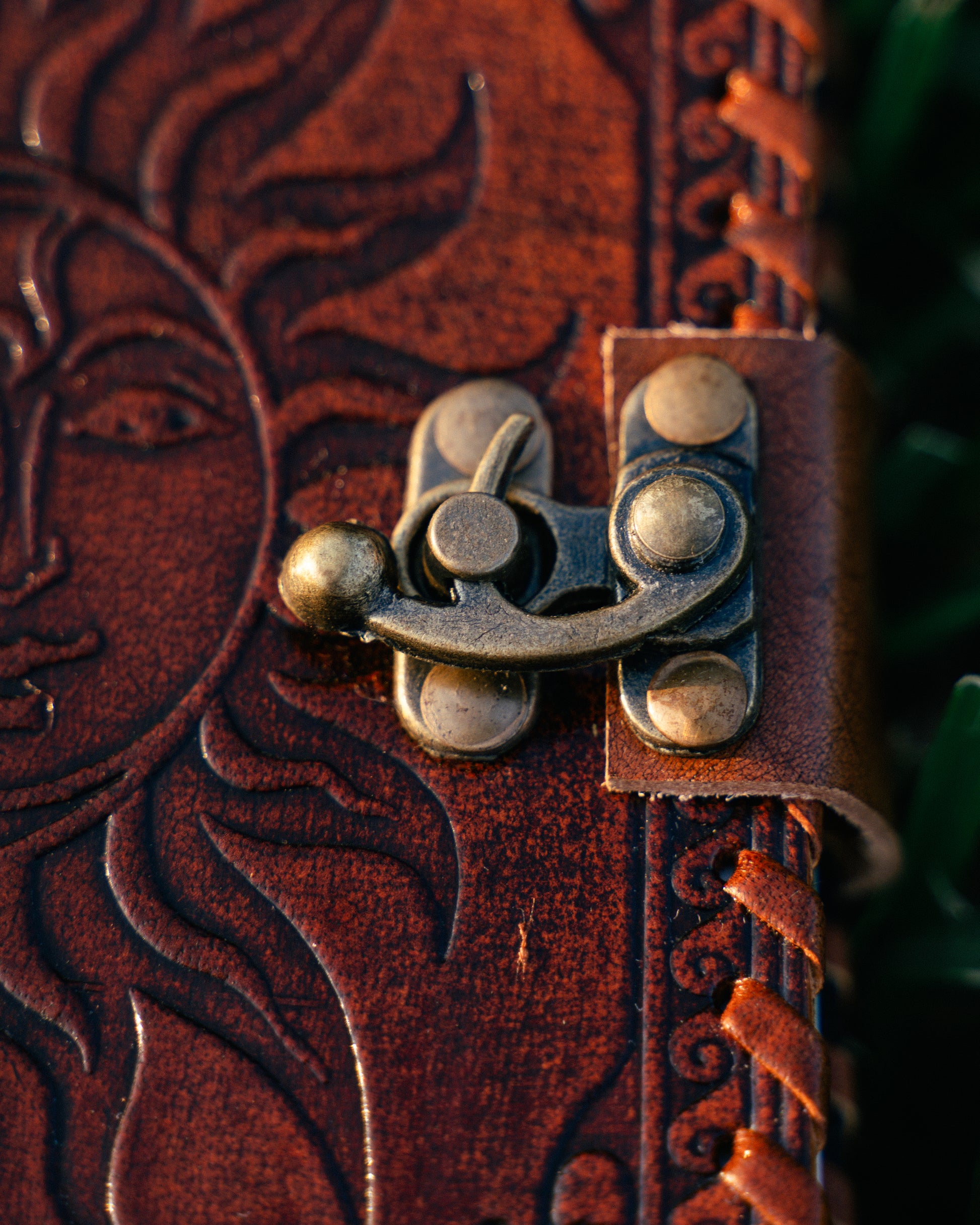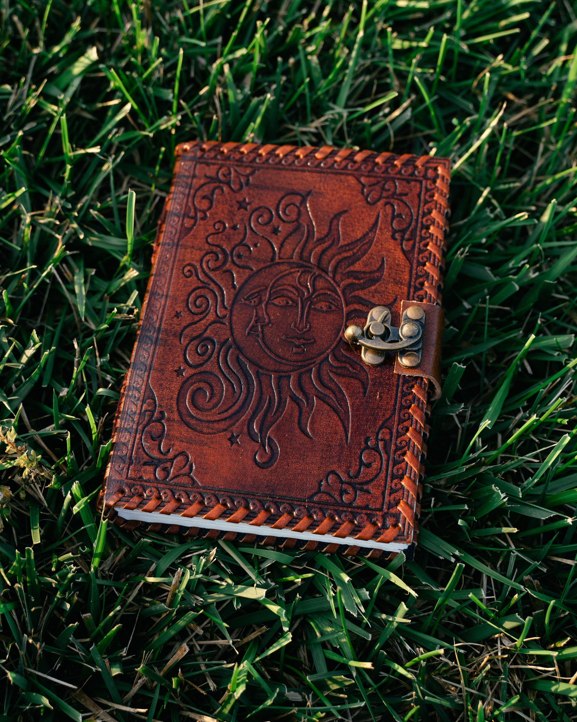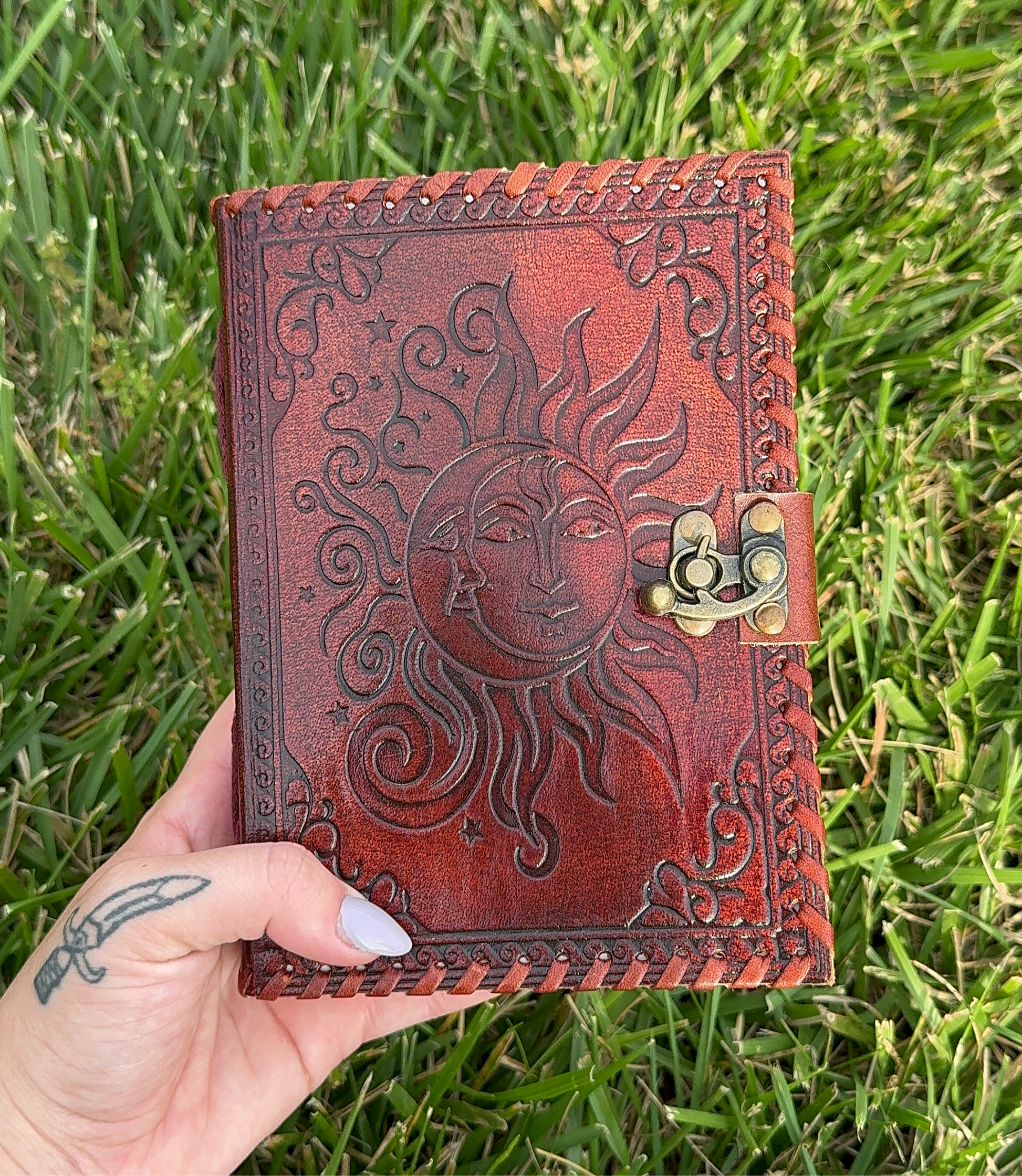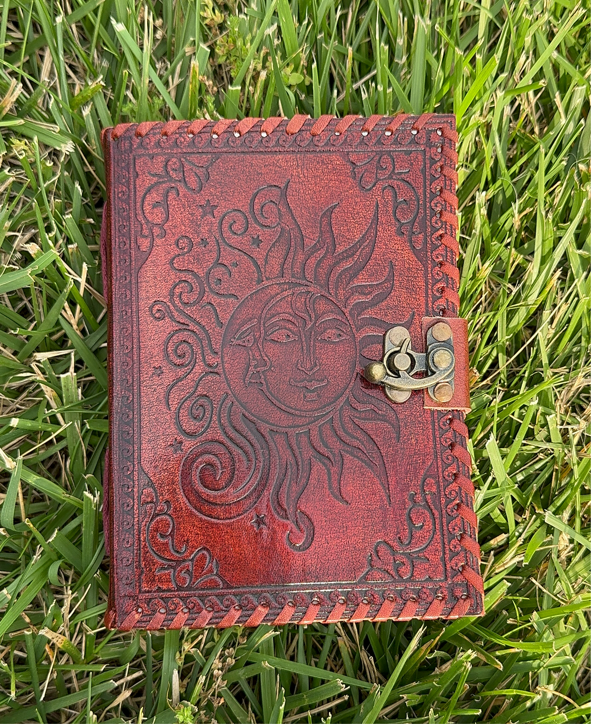 Embark on a journey of enchantment with our handmade sun and moon leather journal. Perfect for scrapbooking, journaling, grimoire creation, and sketching, this versatile journal exudes an antique and vintage vibe. The celestial sun and moon design inspires creativity and nostalgia, making it a sacred tool for any spiritual being. Embrace the magic of the cosmos and unleash your creativity with this bewitching journal. Add a touch of old-world charm to your everyday life and start writing your own story in style. Get yours now and let your inner magic flow freely.